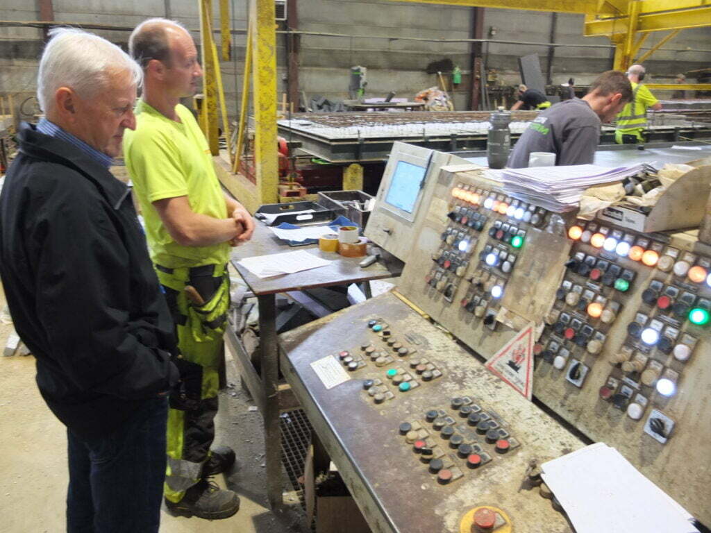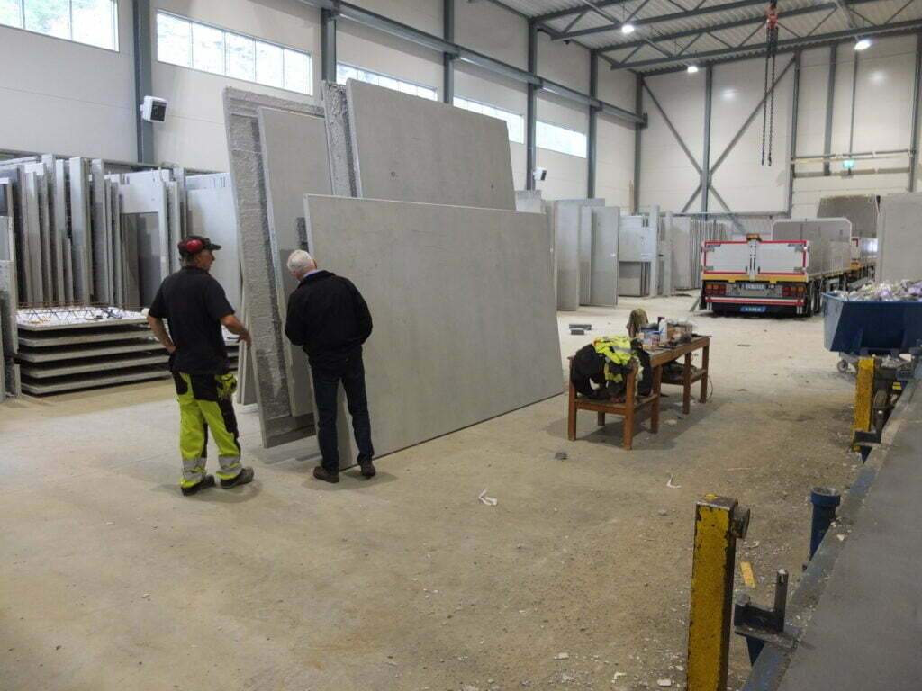 Det er eget sement-blanderi, som er datastyrt i fabrikken. I tillegg er det et eget rom for herding av de produserte enhetene – og det ta ca. et døgn fra produksjonsbord til at produktet blir lastet på bil/båt.