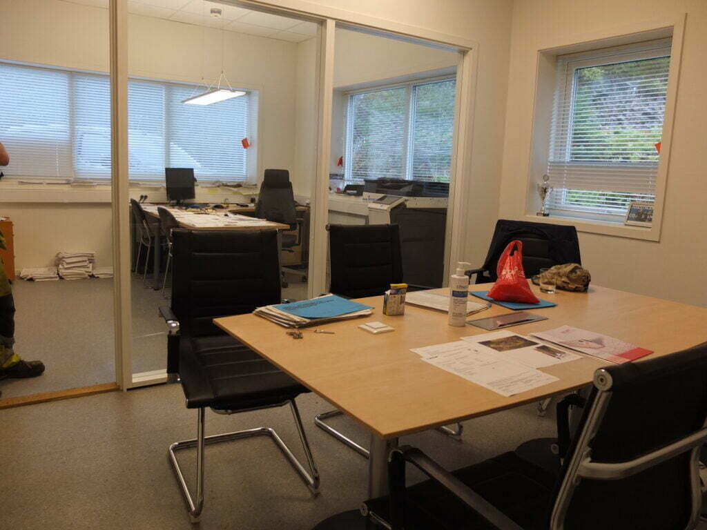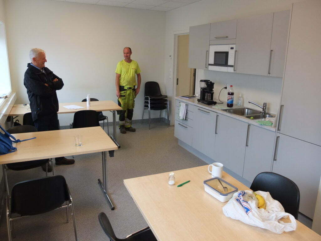 Det er nå tilrettelagt med flotte garderober, kontor-fasiliteter, spiserom og møterom i.f.m. med det nye bygget.